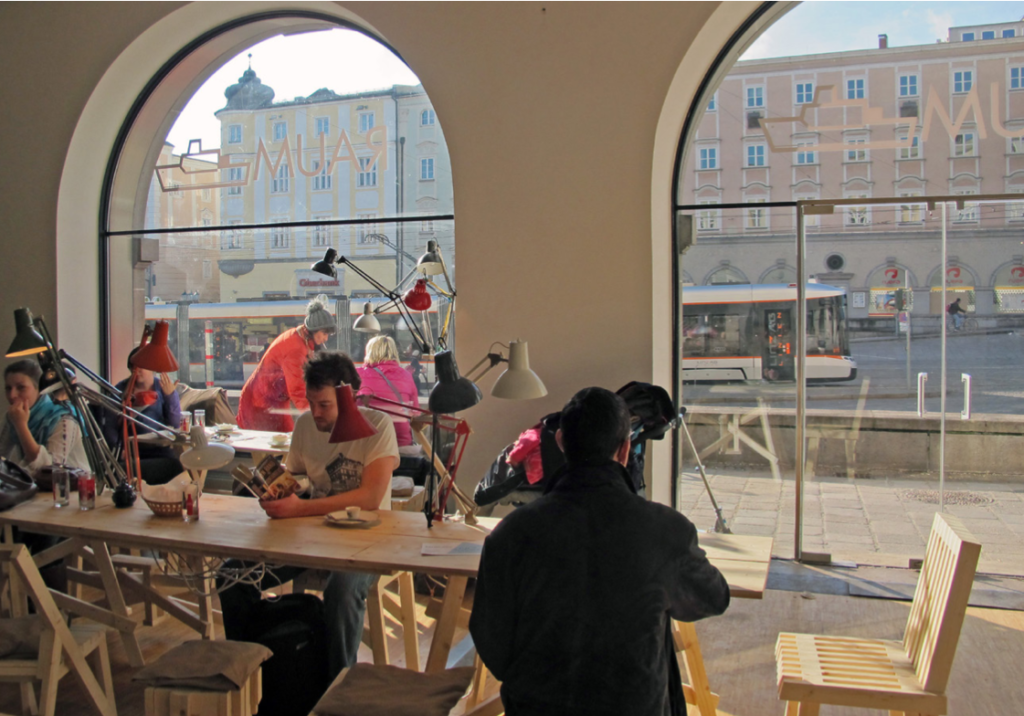 RAUMSCHIFF provides young artists and designers with simple presentation opportunities on Linz’s main square. A large exhibition space combined with a store and café promotes individual initiative as well as social and economic recognition of artistic work.